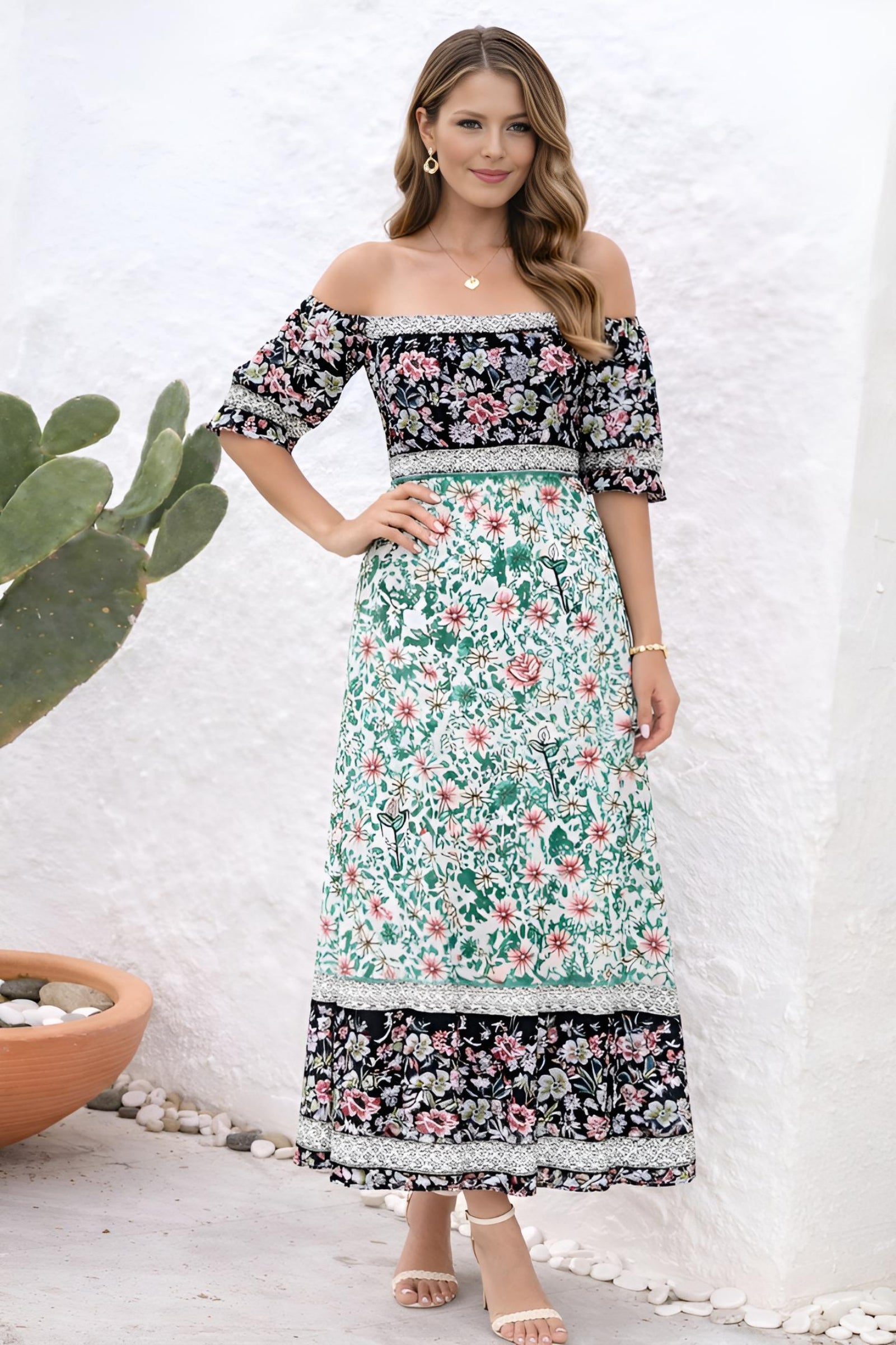 Made from a lightweight, breathable fabric, this floral maxi dress is perfect for spring and summer wear, whether you’re heading to a beach vacation, garden party, brunch, or casual evening out. The intricate boho-inspired floral print and contrasting border details add a romantic, free-spirited touch that never goes out of style.