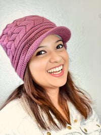 Cute Beanie Hats for Women - Winter Cozy Fur Earflap Knitted Wool Ski Cap Beret Beanie Hat with Visor